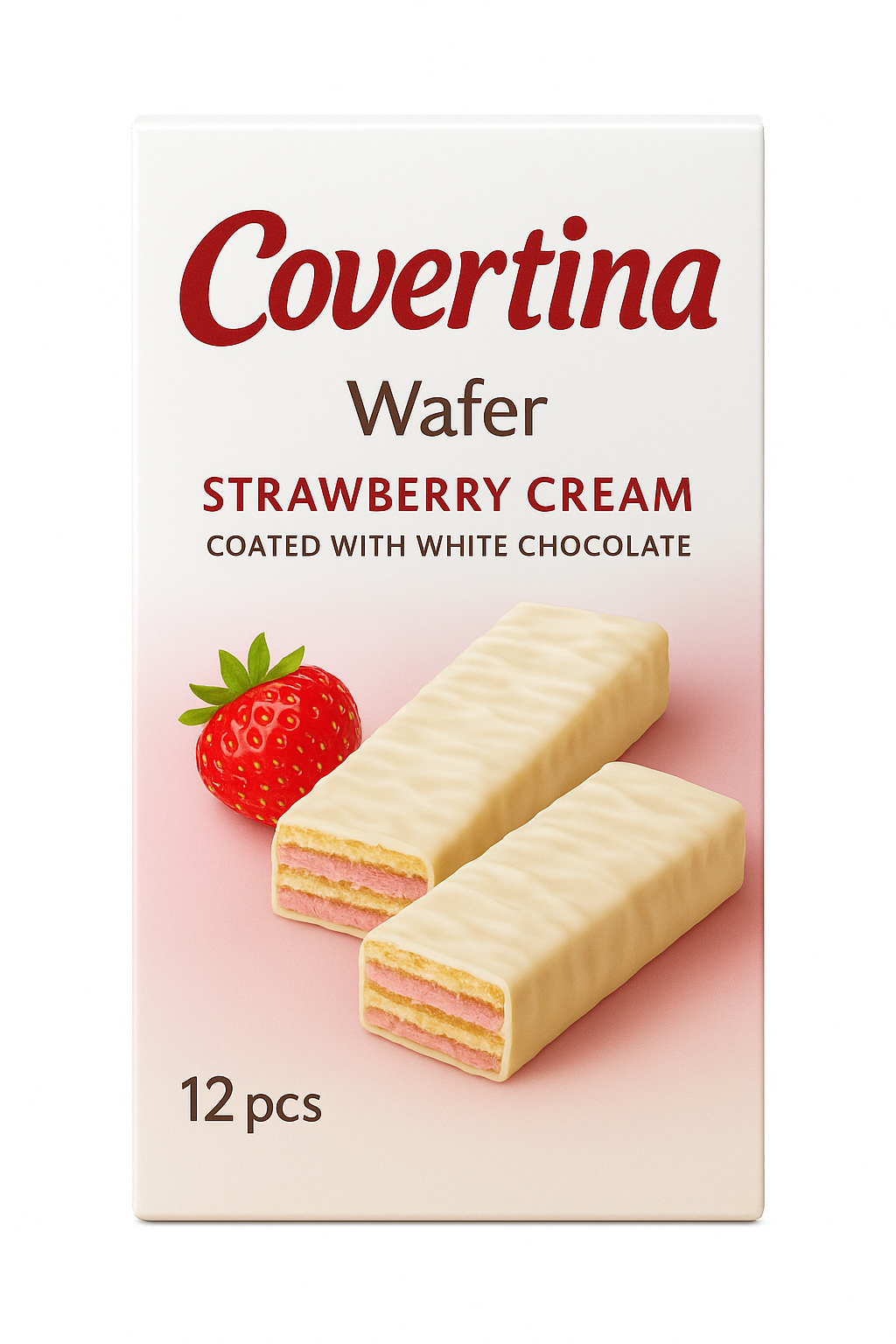 جرّب طعم الفخامة مع بسكويت ويفر كوفرتينا بحشو كريمة الفراولة والمغطى بالشوكولاتة البيضاء المتوفّر الآن على سوق بلس
